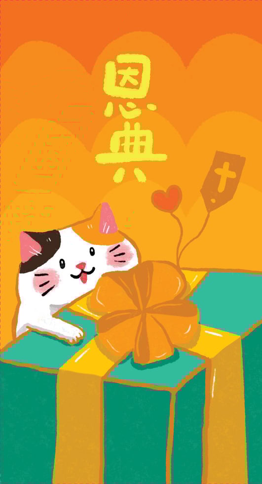 毛毛聊利是封 (A):恩典 售價:$38 / 包(每包 20 個) 尺寸:90x166mm 產品編號:J0411A